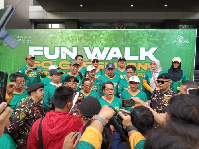 Jakarta – Ikatan Sarjana Nahdlatul Ulama (ISNU) menggelar kegiatan bertajuk “ISNU Merawat Jagat” yang meliputi Fun Walk dan peluncuran Gerakan Nasional Penanaman Satu Juta Pohon. Acara ini berlangsung di Jakarta Pusat, dimulai dari depan Gedung Kementerian Agama RI dan berakhir di Radio Republik Indonesia (RRI). Ratusan peserta dari berbagai kalangan, termasuk pengurus ISNU, perwakilan lembaga NU, dan masyarakat umum turut ambil bagian dalam kegiatan ini.